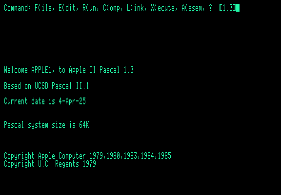 As part of my explorations of the UCSD p-System, the first thing I wanted to do was to get Apple Pascal for the Apple II running on my current Mac.